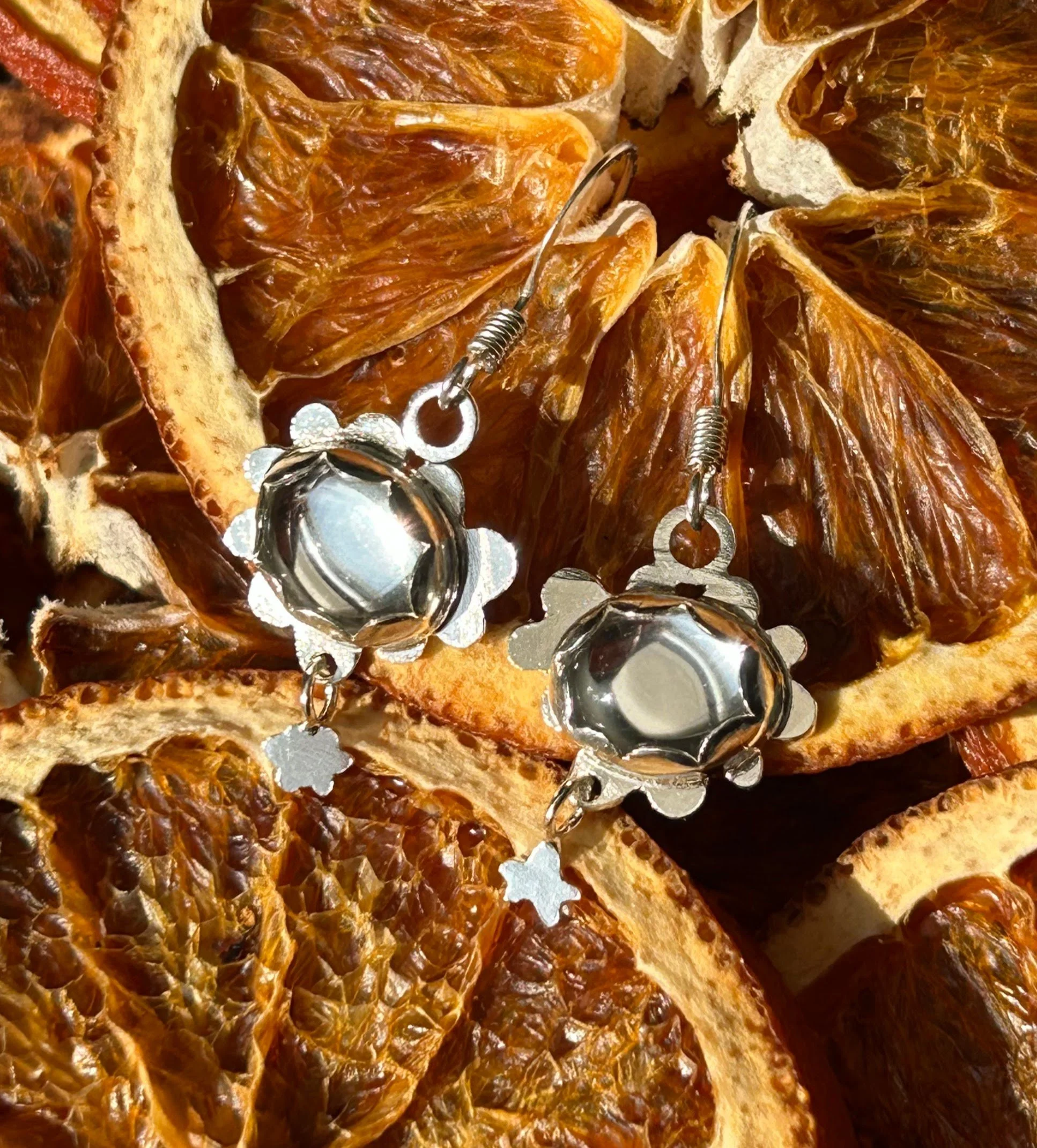 Magical Girl Earrings Prototype - 2025 - sterling silver, fine silver, and vintage Czech glass cabochons.