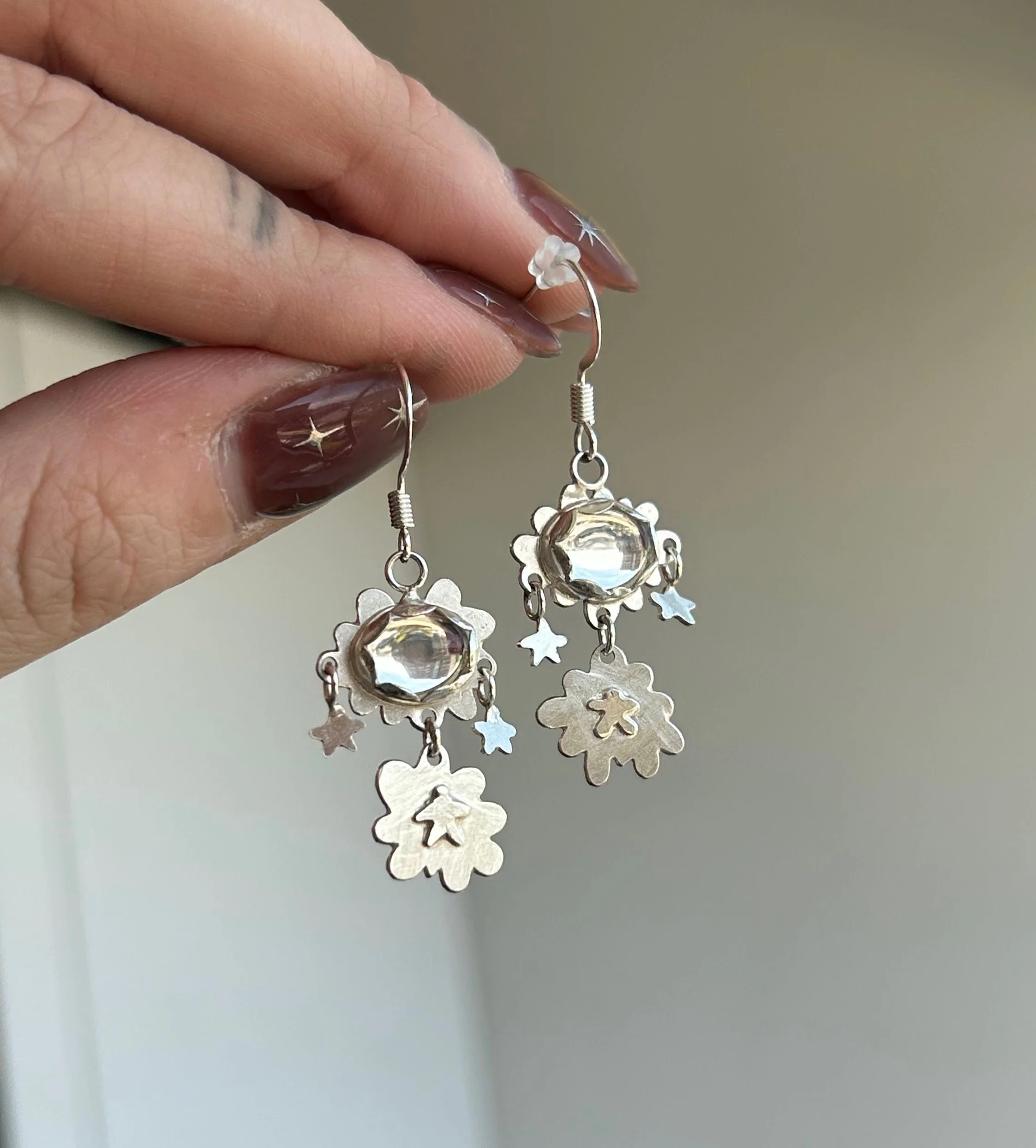 Baby Cloud Earrings - 2025 - sterling silver, fine silver, and vintage Czech glass cabochons.